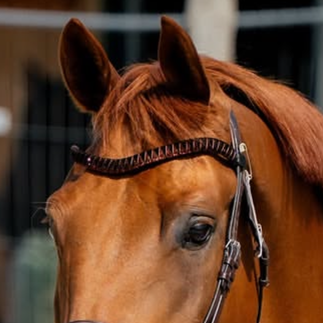 Handgefertigter Stirnriemen in geschwungener Form. Zur Auswahl stehen zahlreiche Farben in Samt- oder Glitzersamtoptik. Die Grundlage des Stirnriemens ist aus Leder gefertigt. Die Breite beträgt etwa 1,7 cm, Schlaufengröße ca. 3 cm.